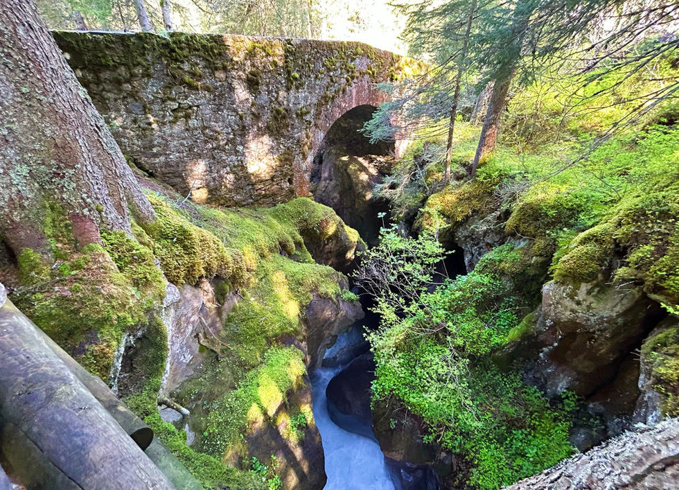 Les sentiers eux-mêmes commencent assez facilement, bien que le sentier depuis Notre Dame de la Gorge jusqu'au Pont Romain soit assez raide et tout en rochers, ce qui peut être un peu glissant. La partie la plus technique est le sentier entre la cascade de la Combe Noir et La Sololieu. Il s'agit d'un chemin secondaire sur les cartes IGN reliant les deux sentiers qui courent parallèlement vers le nord. Il présente de grands dénivelés ainsi que de nombreuses racines et rochers, et nos enfants utilisaient souvent leurs mains. Si vous voulez éviter cette partie, vous pouvez rebrousser chemin depuis la cascade de la Combe Noir et emprunter le sentier du Pont Romain à La Sololieu. La descente jusqu'au Parc Loisir du Pontet est également assez raide et pas particulièrement jolie. Donc, si vous souhaitez faciliter les choses ou si vos enfants sont plus jeunes, nous vous recommandons de faire la première partie du sentier et de rebrousser chemin en empruntant le même itinéraire depuis le Refuge Nant Borrant ou depuis la cascade de la Combe Noir. Les 40% restants du sentier que nous présentons ici ajoutent peut-être 15% de sa beauté globale et nous avons constaté que nos enfants étaient moins excités à ce moment-là. La rivière Bonnant a creusé de profonds ravins à travers le roc et il y a plusieurs points de vue le long du sentier qui sont spectaculaires mais pourraient être dangereux pour les enfants. Vous voudrez bien les surveiller à ces endroits.